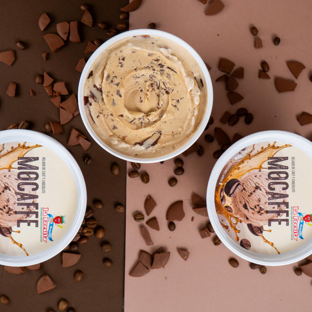 Helado de café con trozos de chocolate.