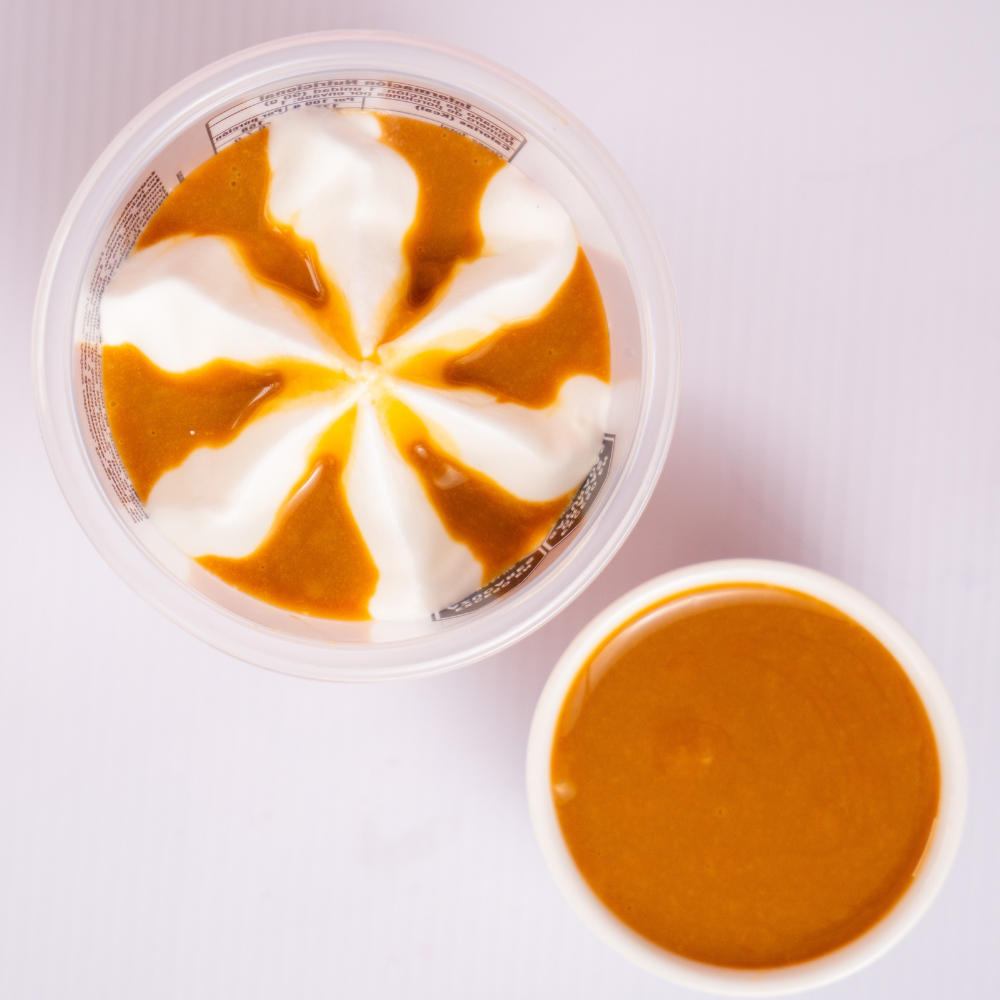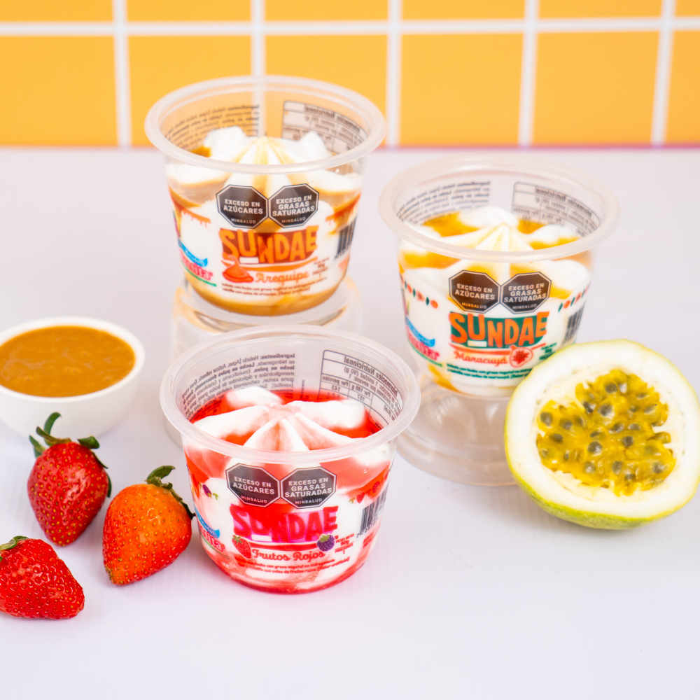 Sundae con helado cremoso de vainilla y salsa arequipe.
