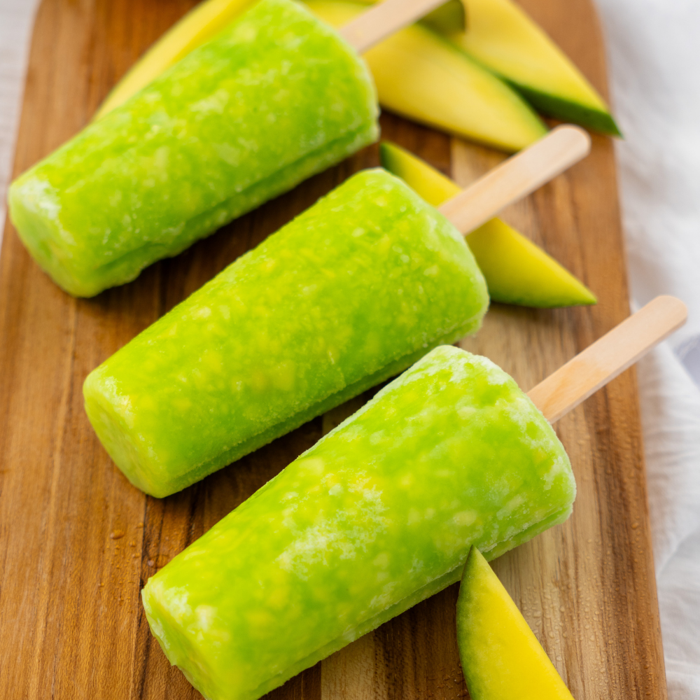 Agua, pulpa de mango biche, azúcar, acidulante (ácido cítrico), color artificial (Azul N° 1, Azul N° 2, Amarillo N°5). CONTIENE TARTRAZINA.